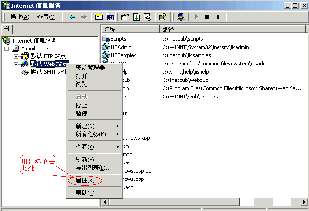 默认Web站点一般用于对向所有人开放的WWW站点,比如我们的“www.meibu.com”,任何用户都可以无限制地通过浏览器来查看它,请首先确认你的电脑已经安装了IIS。